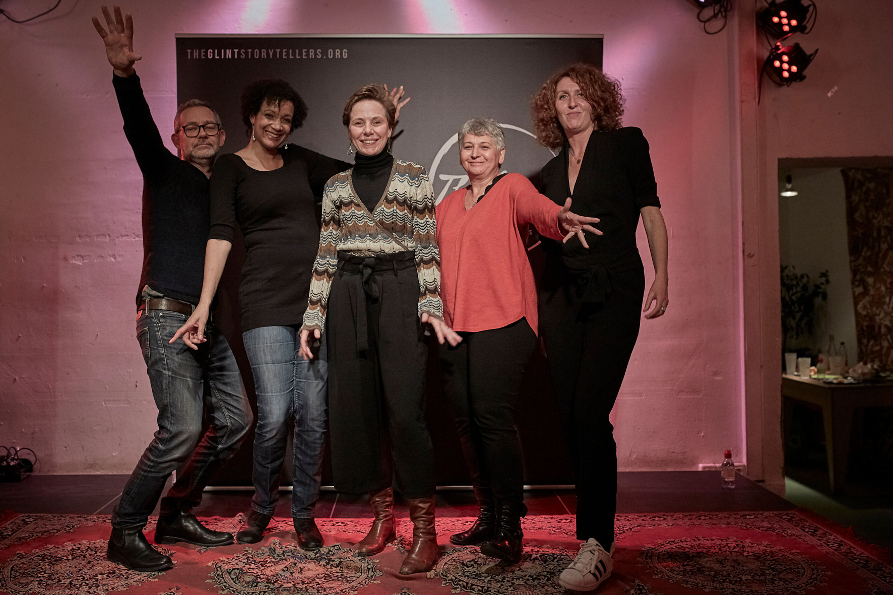 C’est parce qu’elle avait le trac que Mélanie a fait de la prise de parole son métier. Comédienne, chanteuse, coach et psychologue, elle a une conviction : c’est en prenant la parole qu’on prend sa place et qu’on peut changer les autres et le monde. Elle crée le Glint pour que chaque personne puisse faire entendre son histoire et pour connecter les gens entre eux. Elle est très tôt rejointe par Sibylle et Yowa, qui accompagnent les raconteurs à ses côtés.